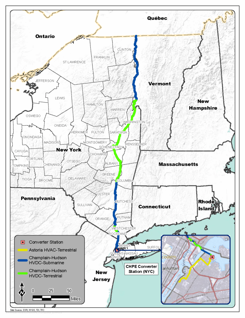 - c.339-mile underground and underwater transmission line to transport 1,250 MW of baseload clean, renewable hydropower from Canada to New York City